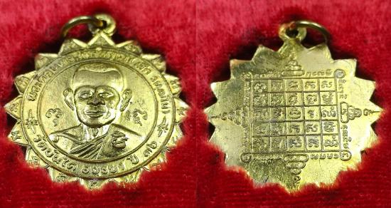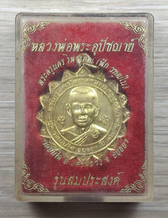 เคาะเดียว60.เหรียญหลวงพ่อฟัก วัดบันได รุ่นสมประสงค์ ปี 2536 เนื้อทองแดงกะไหล่ทอง พร้อมกล่องเดิม