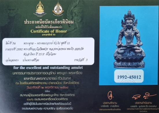 พระกริ่งอวโลกิเตศวร หลวงพ่อเกษม เขมโก ออกวัดหัวลำโพง ปี 2537 เนื้อโลหะ พร้อมใบประกาศติดรางวัลที่ 3 งานจังหวัดพิจิตร (งานสมาคมฯ)