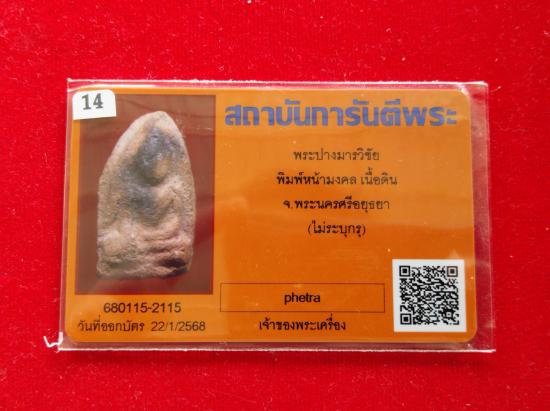 พระปางมารวิชัย พิมพ์หน้ามงคล เนื้อดิน ไม่ระบุกรุ พระนครศรีอยุธยา