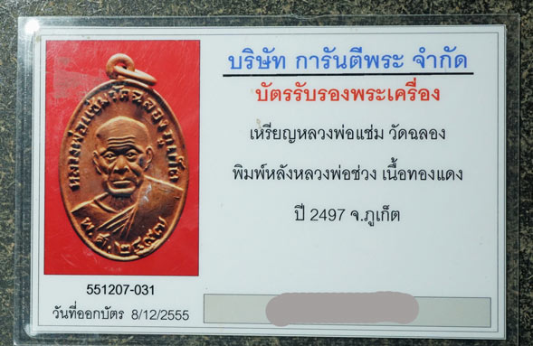 เหรียญหลวงพ่อแช่ม หลังหลวงพ่อช่วง วัดฉลอง จ.ภูเก็ต ปี 2497