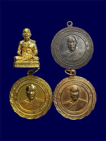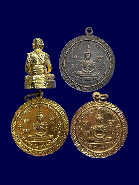 เหรียญถวายภัตราหาร รุ่นแรก 3 องค์ + รูปหล่อ รุ่นแรก 1 องค์ หลวงพ่อสด วัดหลวงพ่อสดธรรมกายราม จ.ราชบุรี