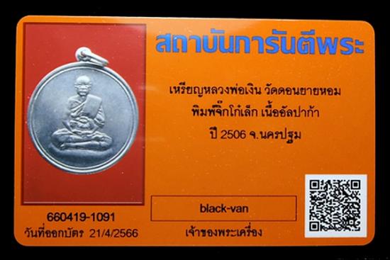 เหรียญจิ๊กโกํเล็ก หลวงพ่อเงิน วัดดอนยายหอม เนื้ออาปาก้า ปี2506 จ.นครปฐม พร้อมบัตรรับรอง G-pra ครับ