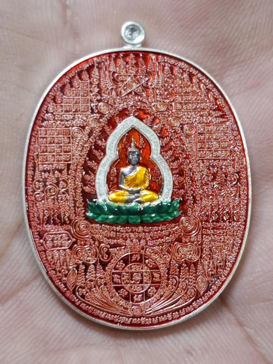 เหรียญเจ้าสัวพุทธโมกข์ หลวงพ่อหนุน สุวิชโย วัดพุทธโมกพลาราม จ.สกลนคร เนื้อเงินลงยาแดง