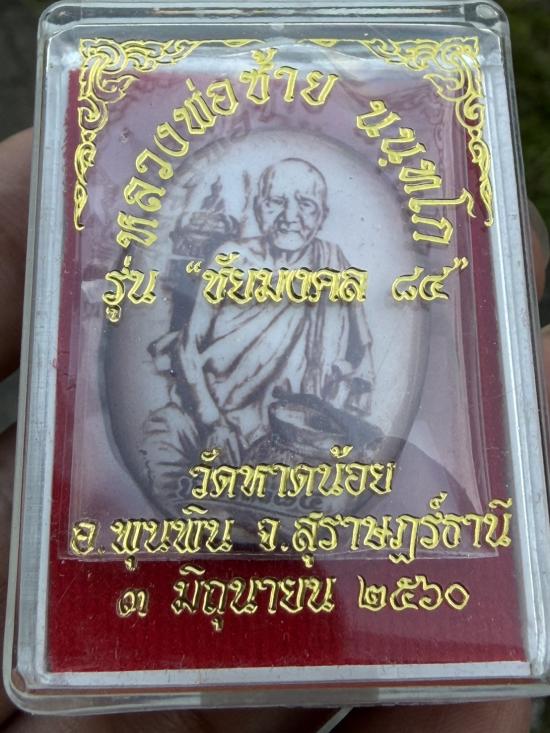 ล็อกเก็ต รุ่นชัยมงคล 84 ปี 2560 หลวงพ่อซ้าย วัดหาดน้อย อ.พุนพิน จ.สุราษฎร์ธานี ฉากน้ำตาล หมายเลข 32 (สร้าง 199 ฉาก)