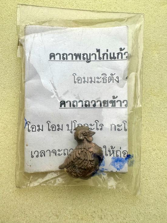พญาไก่แก้วทรัพย์ตุง (พญาไก่ ๒ แผ่นดิน) เนื้อชนวนเก่าอุดผง ฝังตะกรุด ๑ ดอก ข้าวสาร และแร่เงินล้าน ครูบาอินแก้ว วัดดอนมูล อ.แม่ระมาด จ.ตาก พร้อมใบคาถาเดิมๆ |