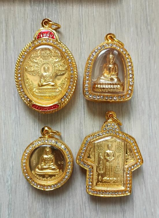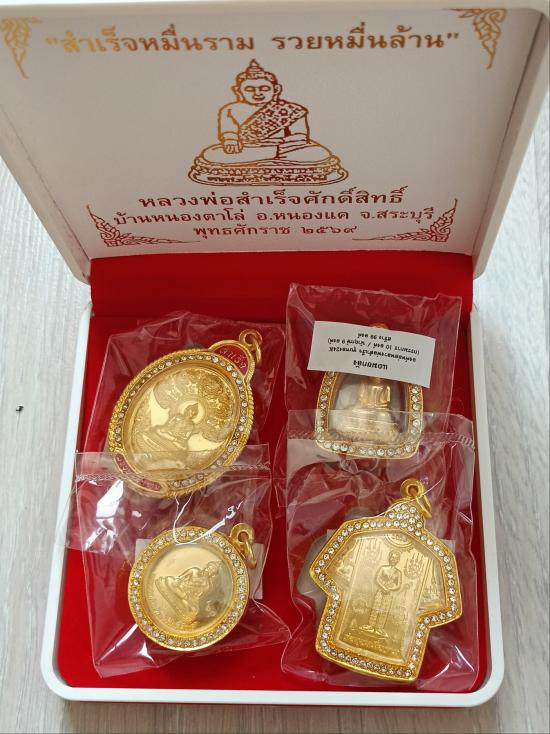 วัดใจเคาะเดียวแดงจ้า ชุดกรรมการแถมยกลัง หลวงพ่อสำเร็จศักดิ์สิทธิ์ รุ่นสำเร็จหมื่นราม เลี่ยมตลับชุบทองฝังเพชร 1ชุด4องค์ เคาะเดียวแดงจ้า
