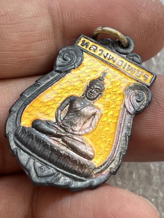 เหรียญเงินลงยาเหลือง รุ่นแรก หลวงพ่อเพชร วัดโพธาราม นครสวรรค์ ปี2537