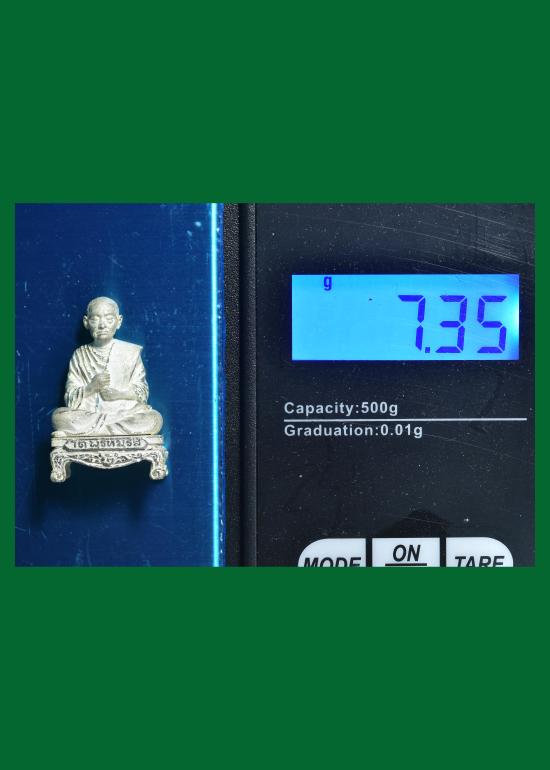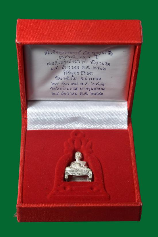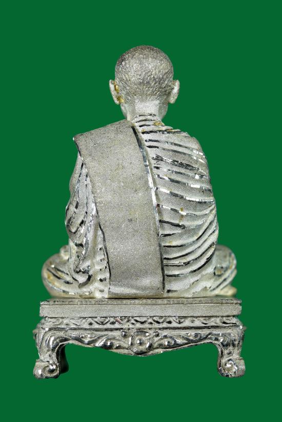 รูปหล่อสมเด็จพระพุฒาจารย์ (โต พรหมรังสี) รุ่น อนุสรณ์ 128 ปี วัดเกศไชโย ออกปี 2543 เนื้อเงินพ่นทราย ขัดเงาบางส่วน น้ำหนักเงิน 7.35 กรัม |