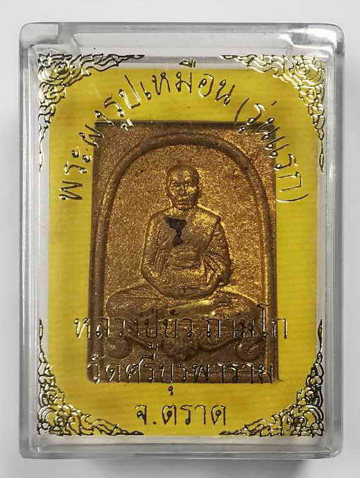 (เคาะเดียว หมายเลข 121 ) พระผงรูปเหมือน (รุ่นแรก) หลวงปู่บัว ถามโก ทาทอง ตะกรุดทองคำ ฝังพลอย วัดศรีบุรพาราม จังหวัดตราด 2560 พร้อมกล่องเดิมจากวัดครับ