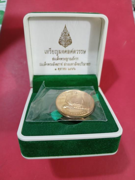 เหรียญมงคลศตวรรษ สมเด็จญาณสังวร สมเด็จพระสังฆราช สกลมหาสังฆปรินายก (ญสส 100 ปี) วัดบวรนิเวศร์ 3 ต.ค. 2556 เนื้อกะไหล่ทอง เก็บรักษาอย่างดี ไม่ผ่านการใช้งาน พร้อมกล่องเดิมๆ