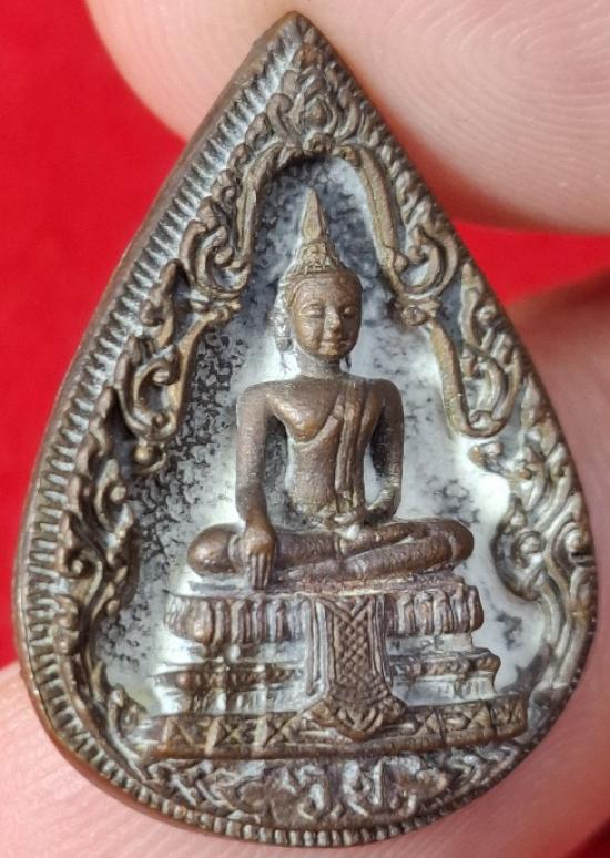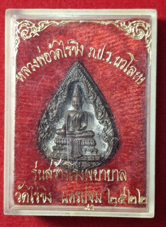 รูปหล่อ พิมพ์หยดน้ำ-หลังภปร. หลวงพ่อวัดไร่ขิง วัดไร่ขิง จ.นครปฐม ปี2522 (เนื้อนวะ หลวงปู่โต๊ะ หลวงพ่อแช่ม หลวงพ่อเปิ่น หลวงพ่อพูล หลวงพ่อไสว หลวงพ่อแพ หลวงพ่อเนื่อง ปลุกเสก กล่องเดิม สภาพสวย หายาก) |