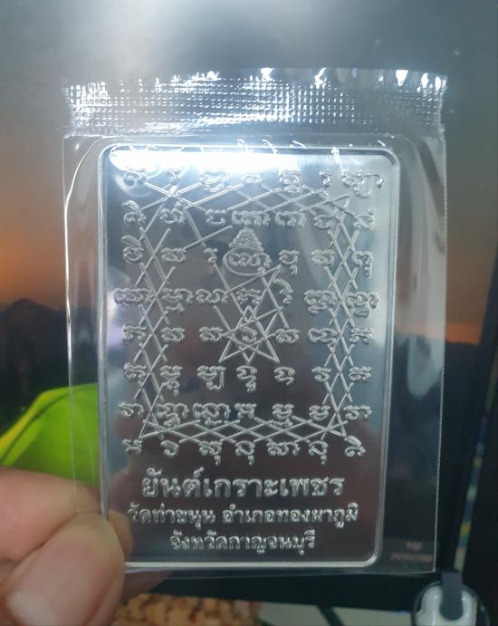 กระผม/อาตมภาพทำแผ่นยันต์เนื้อโลหะ ก็เพื่อท่านทั้งหลายที่ต้องการตะกรุดยันต์เกราะเพชร สามารถนำไปม้วนใช้งานได้เอง แล้วขณะเดียวกัน ถ้าต้องการชนวนในการหล่อพระ หรือว่าสร้างวัตถุมงคลก็สามารถที่จะบูชาไปเก็บเอาไว้ ต่อให้กระผม/อาตมภาพล่วงลับดับขันธ์ไปเป็น ๑๐ ปี ถ้าท่านมีแผ่นยันต์อยู่ ก็สามารถที่จะใช้เป็นชนวนในการสร้างวัตถุมงคลหรือว่าหล่อพระได้