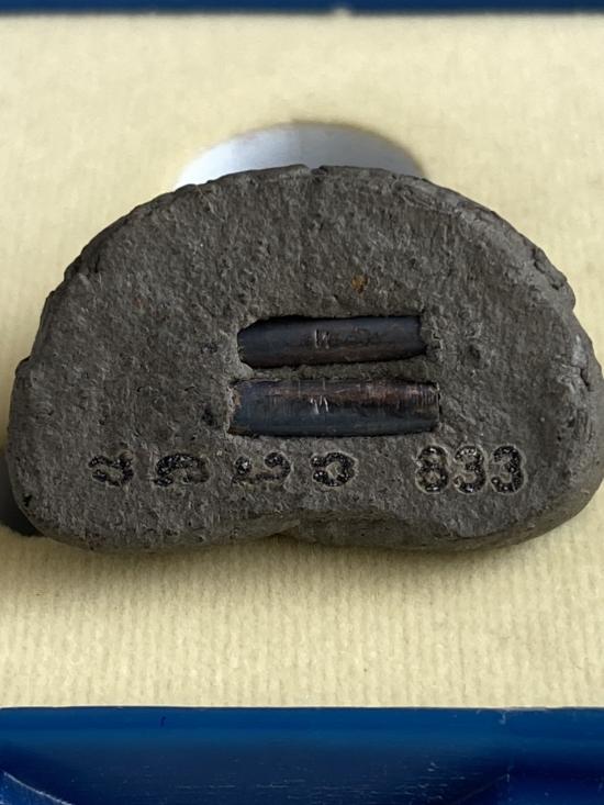 เนื้อ ดินผสมว่านตะกรุดเงินคู่ มีโค๊ตและหมายเลข |