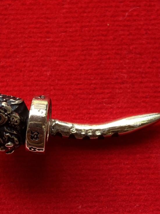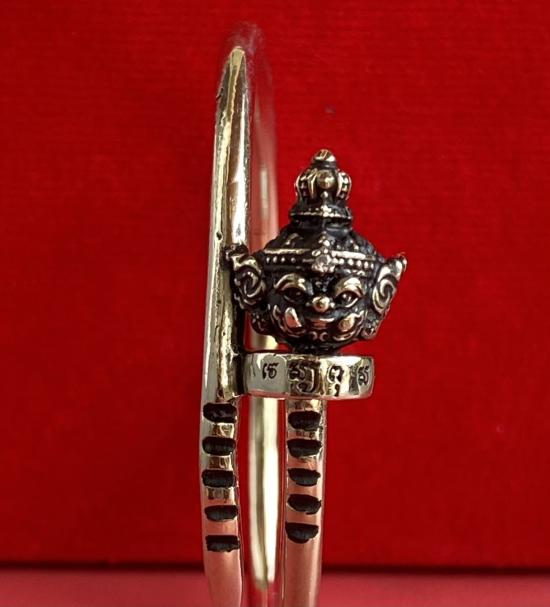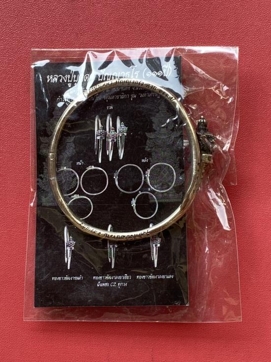 เคาะเดียวแดง หลวงปู่บุดดา กำไลท้าวเวส เนื้อ ทองขาวขัดเงารมดำ |