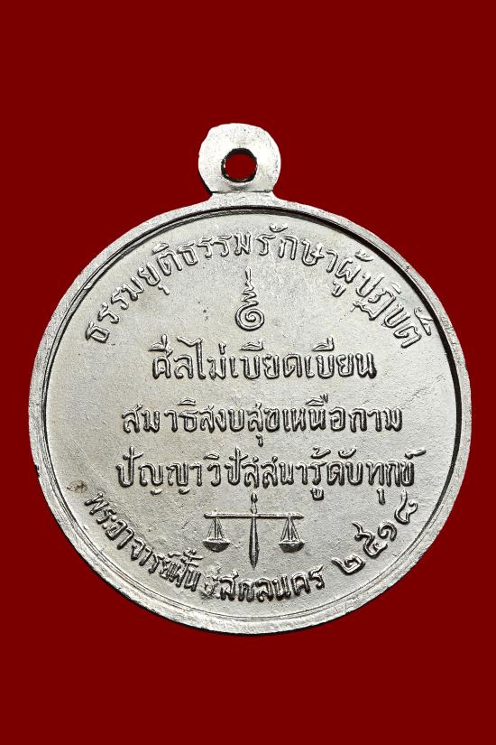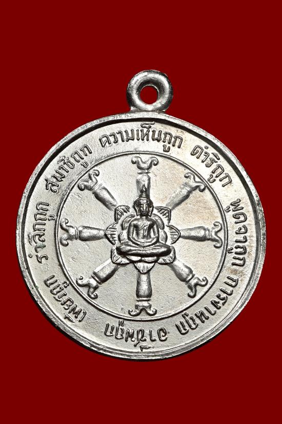 เหรียญธรรมจักรหลวงปู่ฝั้น วัดป่าอุดมสมพร เนื้ออัลปาก้าชุบนิเกิล สร้างถวายโดย ท่านผู้พิพากษาหัวหน้าศาลจังหวัดสกลนคร เมื่อปี 2518 เหรียญรุ่นที่85 หายาก สภาพสวย(องค์ที่2)