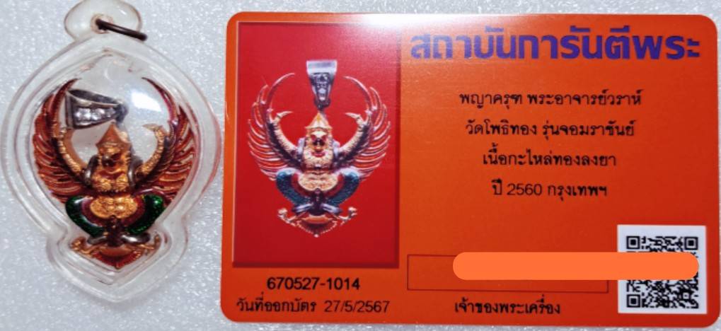 พญาครุฑ พระ อจ.วราห์ วัดโพธิ์ทอง รุ่นจอมราชันย์ เนื้อกะไหล่ทองลงยาปี 2560 กทม.สภาพสวย ไว้ฝากญาติขึ้นคอวันสงกรานต์ค๊ะ