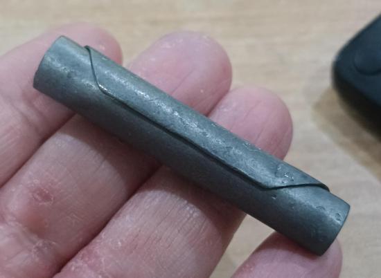 เคาะเดียวแดง**ตะกรุดสร้างเตาเผา หลวงพ่อตัด วัดชายนา ปี 2534 เนื้อตะกั่ว ยาว 2 นิ้ว