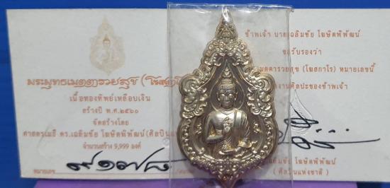 พระพุทธเมตตา รวย สุข เนื้อทองเหลืองเหลือบเงิน ผลงาน อ.เฉลิมขัย หมายเลข 9178 อุปกรณ์ครบ ลงลายเซ็นต์+รวย |