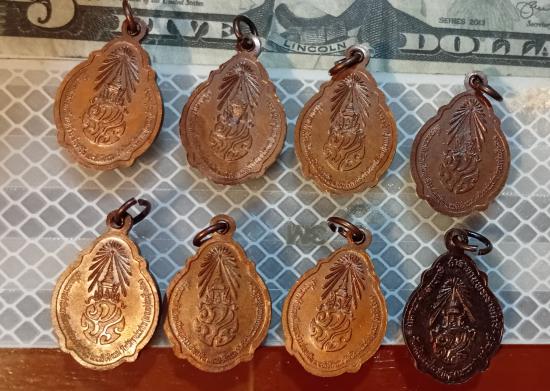 เหรียญพระอาจารย์ฝั้นอาจาโรหลังตรา ภปร. ปี 2521 จำนวน 7 เหรีย ญแถมเหรียญหลวงพ่อเดิมหลังตรา ภปร. 1 เหรียญ