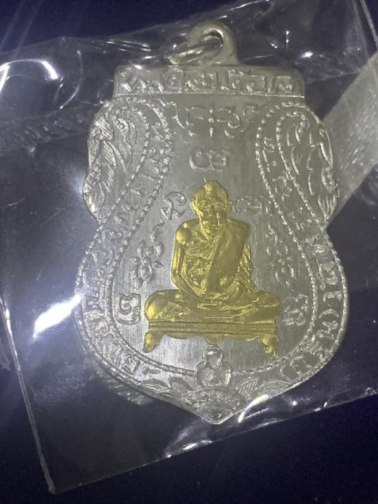 เหรียญหลวงพ่อกลั่น เนื้อเงินหน้ากากทองคำ เลข11 วัดพระญาติ ซึ่งเป็นรุ่นที่จัดสร้างขึ้นเป็นพิเศษเพื่อวัตถุประสงค์ ในการปฏิสังขรณ์อุโบสถ วัดกะสังข์ วาระ: ที่ระลึกครบ ๙๙ ปี (99 ปี)