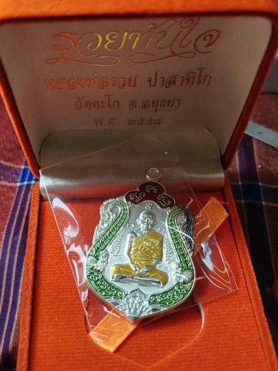 เหรียญหลวงพ่อรวย วัดตะโก รุ่นรวยทันใจ เนื้อเงินลงยา ปี2558 จ.พระนครศรีอยุธยา เลข779 สภาพสวยกล่องเดิม