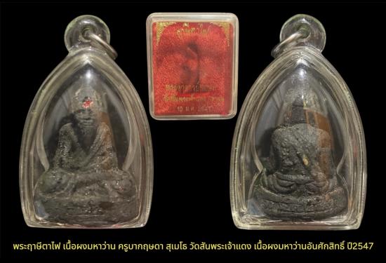 พระฤาษีตาไฟ เนื้อผงมหาว่าน ครูบากฤษดา สุเมโธ วัดสันพระเจ้าแดง เนื้อผงมหาว่านอันศักสิทธิ์ ปี2547 เคาะเดียว