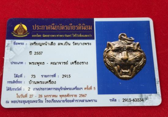 เหรียญหน้าเสือ 2557 หลวงพ่อเปิ่น วัดบางพระ