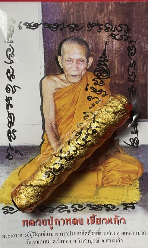 ตะกรุดพระลักษณ์หน้าทอง หลวงปู่กาหลง เขี้ยวแก้ว รุ่นครอบเศียรพระลักษณ์ 50 หมายเลข ๑๙๗๕๙ พร้อมซอง |