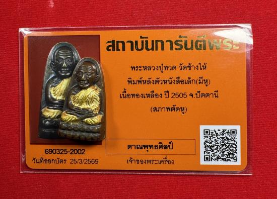 พระหลวงปู่ทวด วัดช้างให้ พิมพ์หลังตัวหนังสือเล็ก(มีหู) เนื้อทองเหลือง ปี 2505 จ.ปัตตานี (สภาพตัดหู)