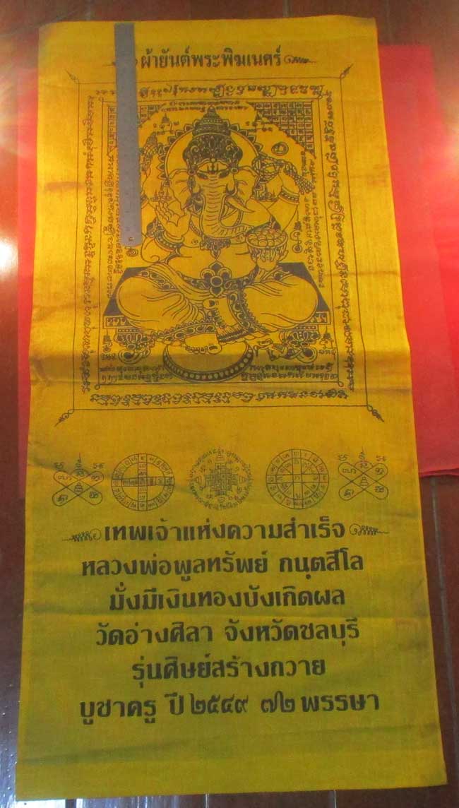ผ้ายันต์ พระพิฆเนศร์ หลวงพ่อพูลทรัพย์ กนฺตสีโล วัดอ่างศิลา จ.ชลบุรี ครับ (พระบ้าน ครับ) |