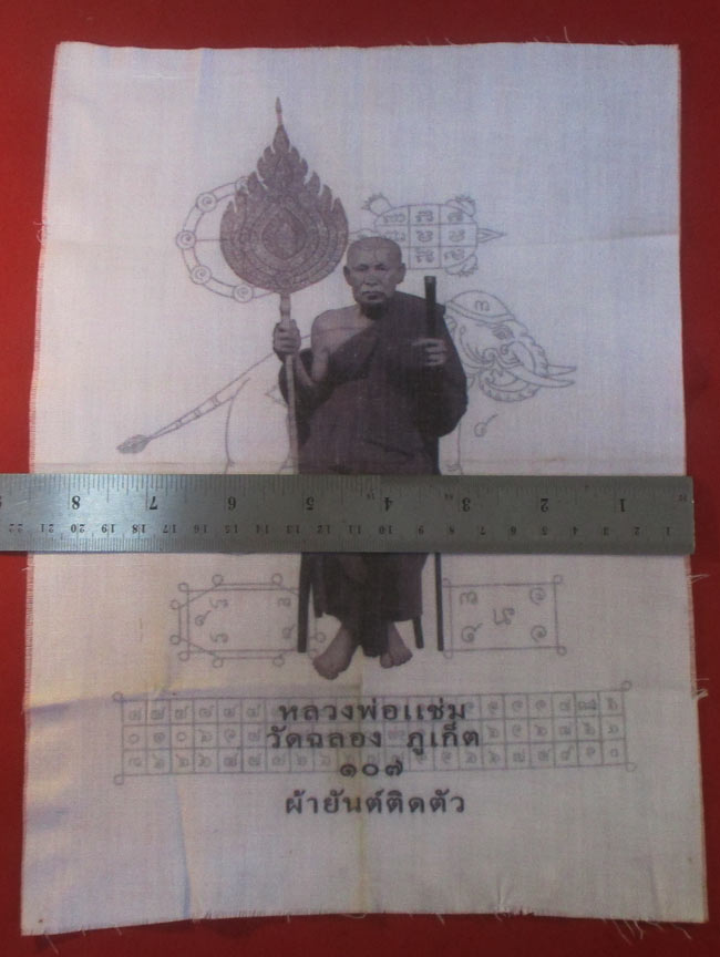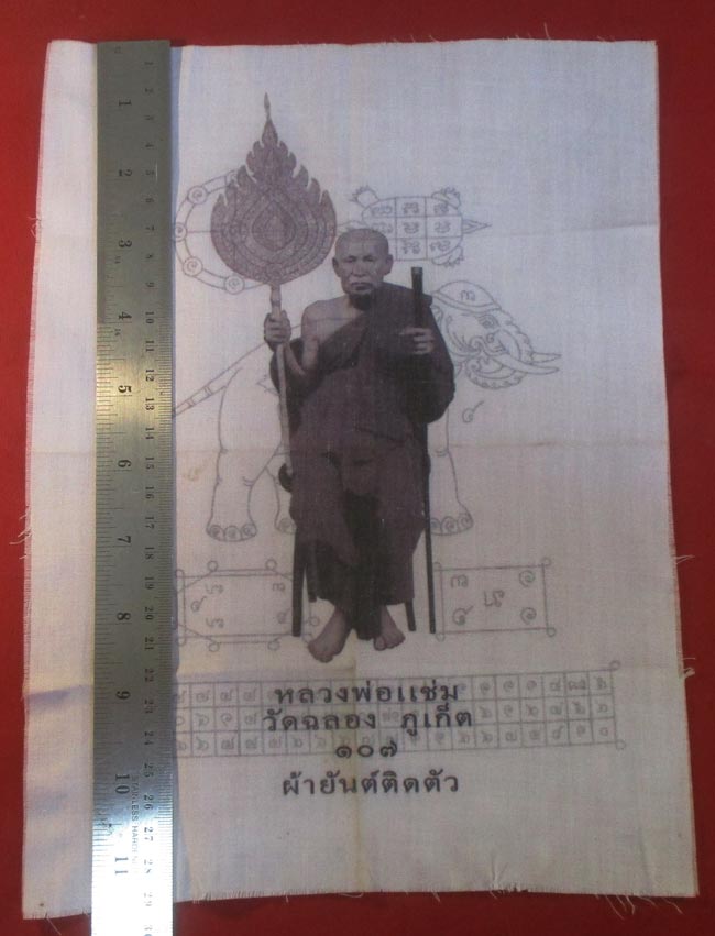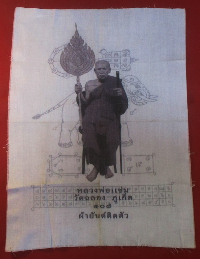 ผ้ายันต์ หลวงพ่อแช่ม วัดไชยธาราราม ต.ฉลอง อ.เมือง จ.ภูเก็ต ครับ