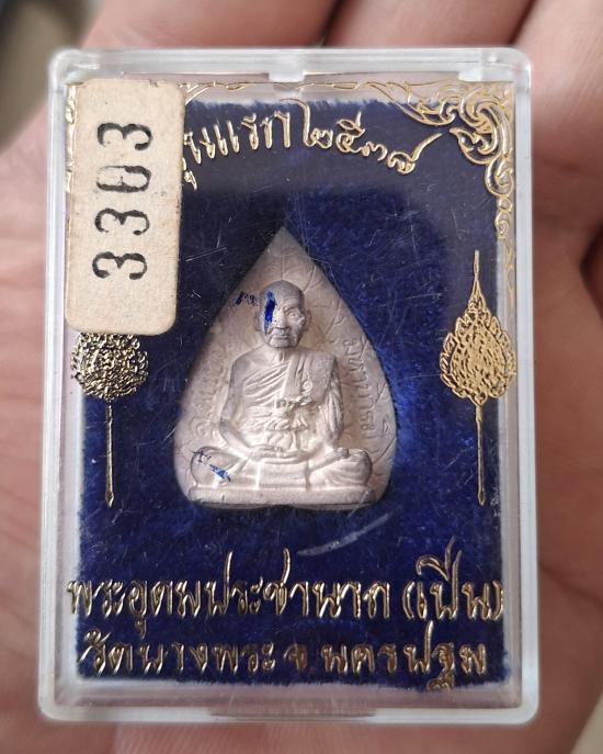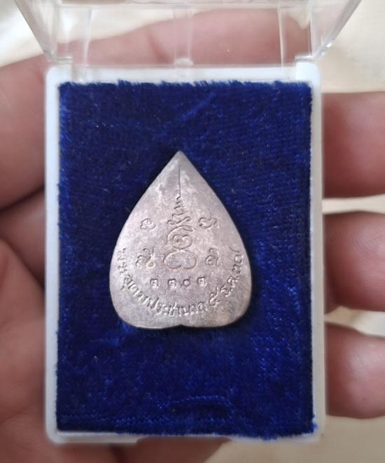 รูปเหมือนใบโพธิ์ หลวงพ่อเปิ่น วัดบางพระ เนื้อเงินปี38 พร้อมกล่องเดิม เลข3303