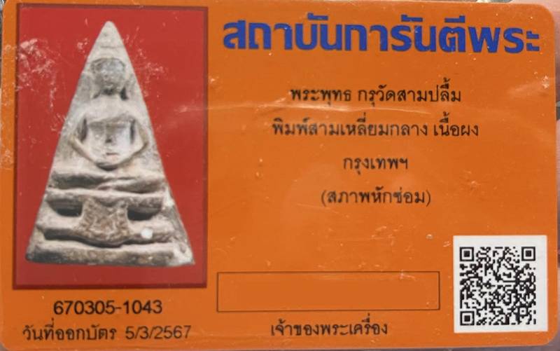 พระกรุวัดสามปลื้ม พิมพ์กลีบบัวกลาง เนื้อผง จ.กรุงเทพ พร้อมบัตรรับรองครับ