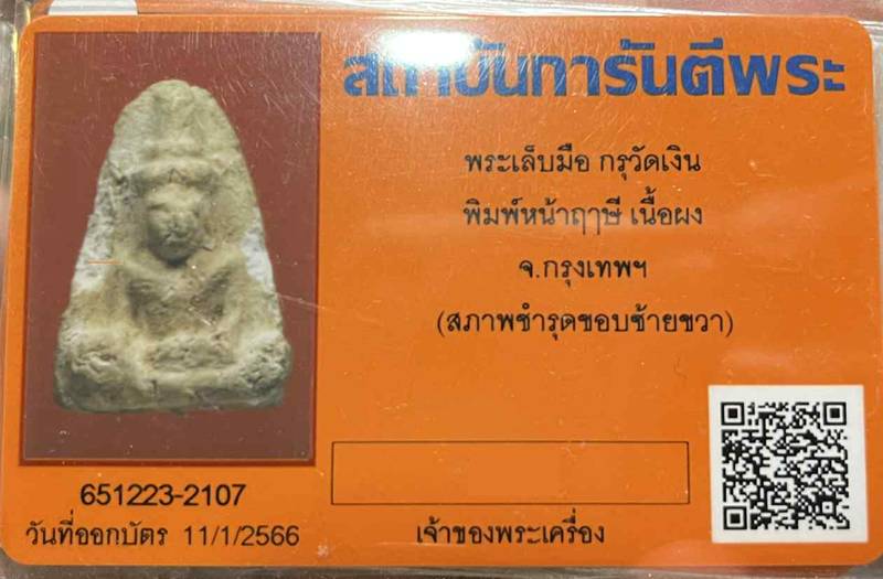 พระกรุวัดเงินคลองเตย พิมพ์ฤาษี พิมพ์หายากนานพบเจอทีครีบ พร้อมบยัตรรับรองครับ