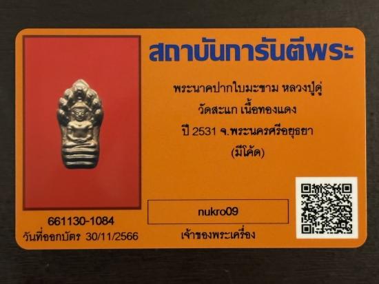 พระนาคปรกใบมะขาม ปี2531 เนื้อทองแดง หลวงปู่ดู่ วัดสะแก อยุธยา+บัตรรับรองG-pra