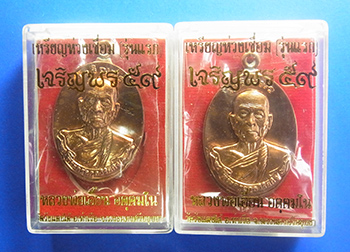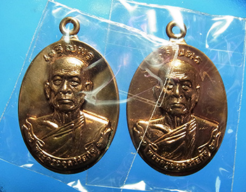 2 เหรียญ เจริญพร ห่วงเชื่อม หลวงพ่อเอื้อน วัดวังแดงใต้ จ.อยุธยา ปี 2559 พิมพ์ใหญ่ เนื้อทองแดง