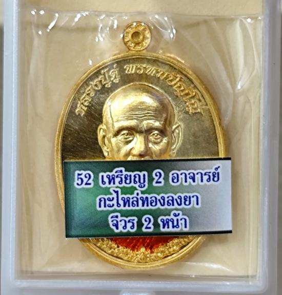 เหรียญ2อาจารย์ หลวงปู่ทวด-หลวงปู่ดู่ รุ่นเจ้าสัวพันล้าน (บอย ท่าพระจันทร์) เนื้อกะไหล่ทองลงยาจีวร โค๊ตเลข ๔๒๔ พร้อมกล่องเดิม