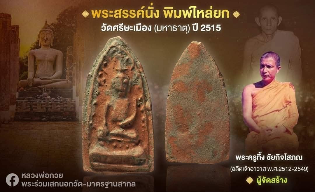 พระสรรค์นั่ง หลวงพ่อกวย เนื้อดิน วัดโฆสิตาราม ออกวัดศรีษะเมือง ปี 2515 จ.ชัยนาท
