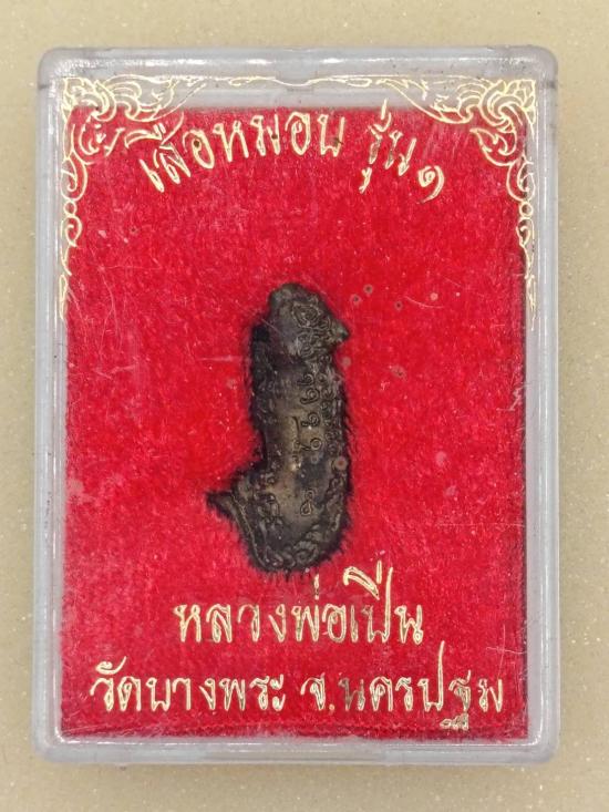 เสือหมอบ รุ่น 1 หลวงพ่อเปิ่น วัดบางพระ จ.นครปฐม เนื้อนวะโลหะแก่เงิน ปี 35 มีรอยจารที่คอ พร้อมกล่องเดิมๆ |