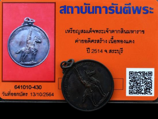 เหรียญสมเด็จพระเจ้าตากสินมหาราช ค่ายอดิศรสร้าง เนื้อทองแดง ปี 2514 จ.สระบุรี พระดี พิธีใหญ่ + บัตรรับรองพระแท้การันตีพระ