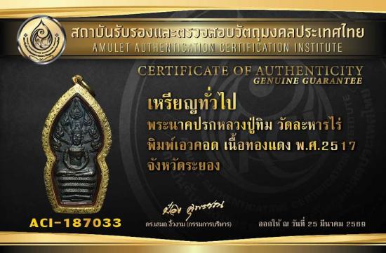 พระนาคปรก หลวงปู่ทิม วัดละหารไร่ พิมพ์เอวคอด ปี 2517 พร้อมบัตร เลี่ยมกันน้ำ ไม่มีทองแล้ว