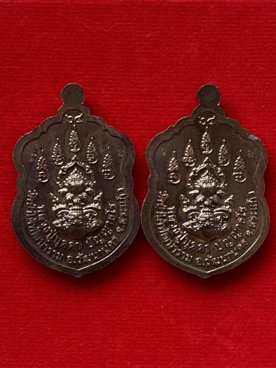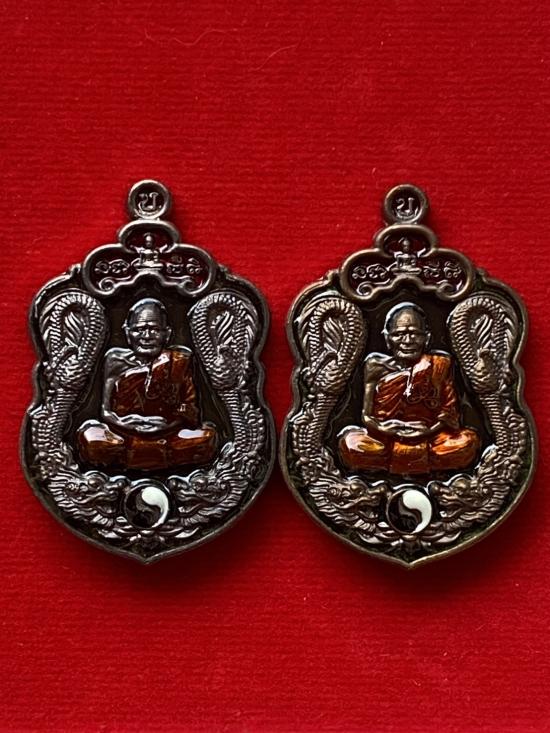 เคาะเดียวแดง หลวงปู่บุดดา รุ่น เสมามังกรคู่ฉลองกุฎิ เนื้อ นวะลงยา 2องค์ |