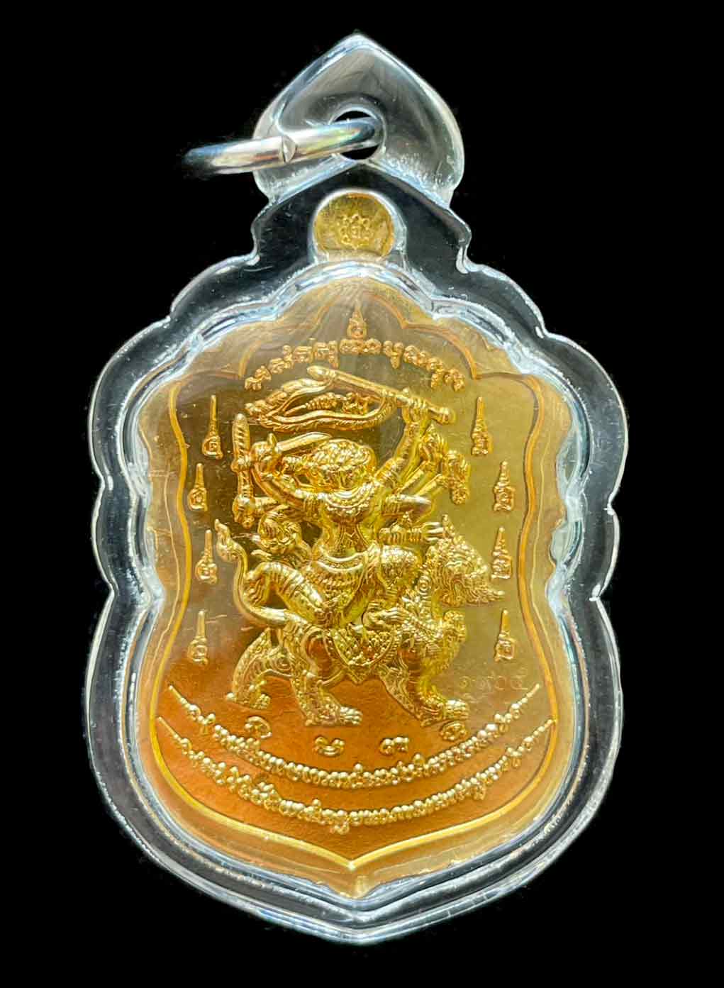 วัดใจ เหรียญมหาเศรษฐี 80 หลังหนุมาน 8 กรขี่สิงห์ หลวงพ่อเอื้อน วัดวังแดงใต้ อยุธยา กะไหล่ทอง เลข 1965 เลี่ยมพลาสติก สวยงาม |