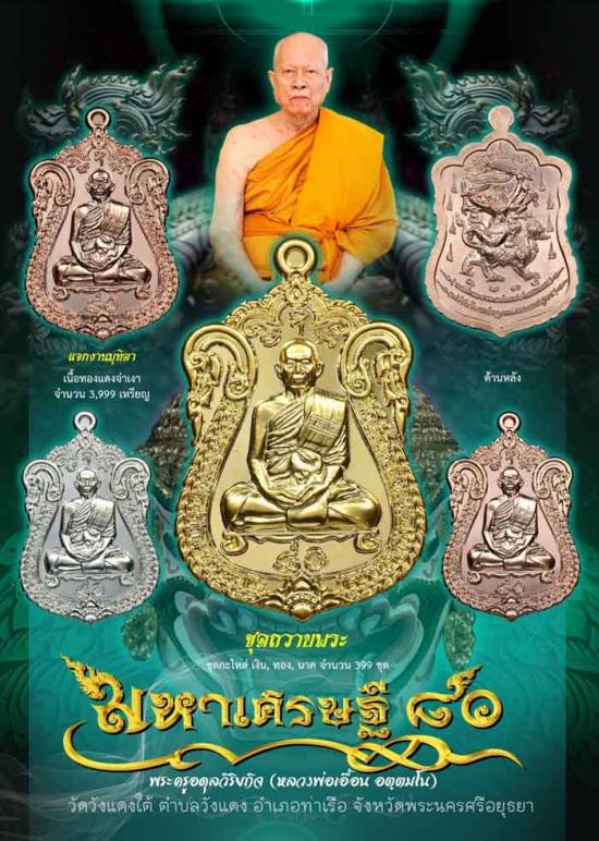 เหรียญมหาเศรษฐี 80 หลังหนุมาน 8 กรขี่สิงห์ หลวงพ่อเอื้อน วัดวังแดงใต้ อยุธยา