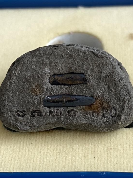 เนื้อ ดินผสมใบลาน ตะกรุดเงินคู่ มีโค๊ตและหมายเลข |