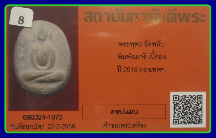 พระวัดพลับองค์นี้จัดสร้างในปี16ครับ โดยใช้ผงเก่าจำนวนมากมาบดผสม