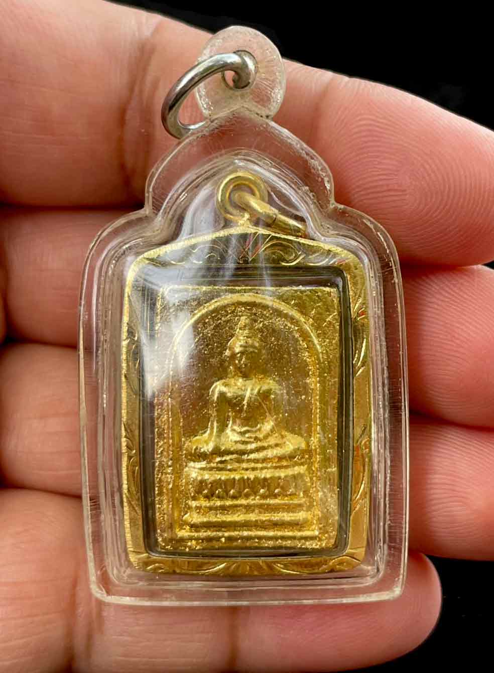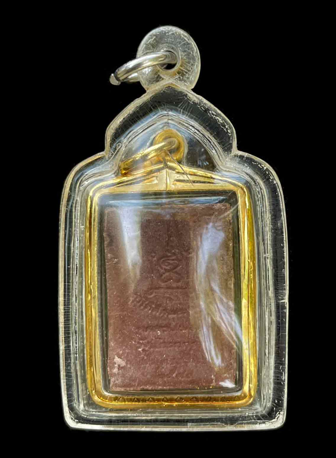 พระผง สมเด็จหลวงพ่อปู่ วัดโกรกกราก จ.สมุทรสาคร รุ่นไม้สักพระอุโบสถ ปี 2540 เลียมพลาสติก เก็บผิวทองไมครอนเดิมจากวัด