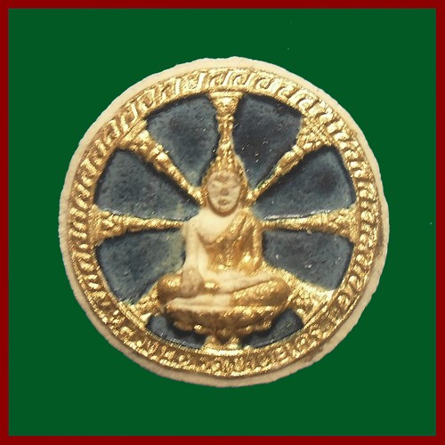สวย ซองเดิมๆ-180- พระผงธรรมจักร (จักรพรรดิ์)ลงสีปิดทอง หลวงพ่อวัดเขาตะเครา อ.บ้านแหลม จ.เพชรบุรี พศ.2518