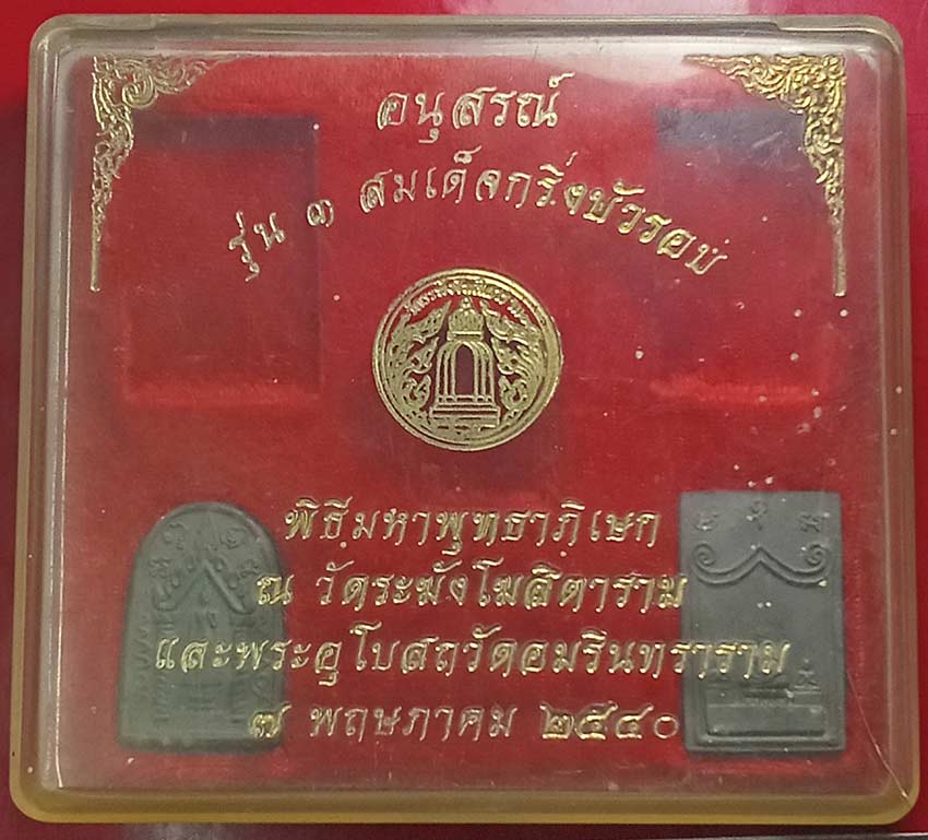***10 บาท*** (2 องค์) ชุดพระสมเด็จ พิธีมหาพุทธาภิเษก "อนุสรณ์รุ่น 3 สมเด็จกริ่งบัวรอบ" ปลุกเสก ณ วัดระฆังฯ + วัดอมรินทราราม (หลวงพ่อโบสถ์น้อย) ปี40 (ผสมมวลสารเก่าศักดิ์สิทธิ์) + (พิธีใหญ่) ศักดิ์สิทธิ |