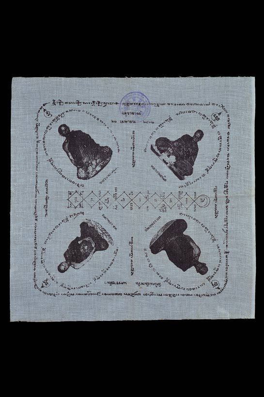 ผ้ายันต์จตุราจารย์ ( 12 X 12 นิ้ว ) หลวงพ่อคูณ , หลวงพ่อคง , หลวงพ่อนิล , หลวงพ่อพุธ จัดสร้างโดย วัดใหม่อัมพวัน พ.ศ.2532